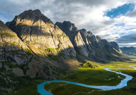 Serene Mountain Lake Dramatic Landscape Aerial View Stunning Nature Scenery Picturesque Vista