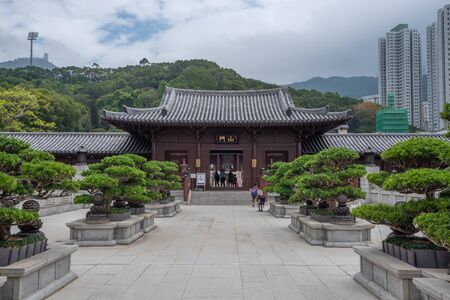 HongKong, China - November, 2019: The Chi Lin Nunnery, a large Buddhist temple in Hong Kong