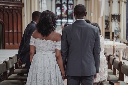 NEW YORK CITY, USA - July 10, 2018: catholic wedding ceremony in the church