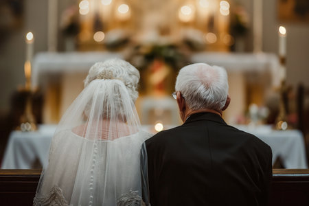 elderly couple bride and groom in front of the altar