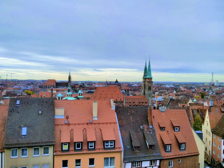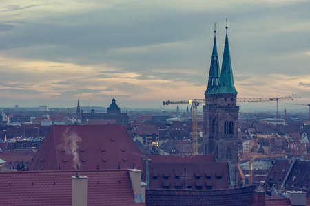 View at historical center of old German city Nuremberg from the Nuremberg castle at the morning, Germany. October 2014. High quality photo