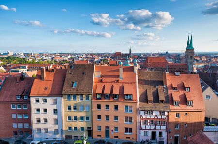 Beautiful aerial vire of Nuremberg medieval city skyline in summer season, Germany.