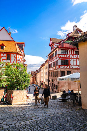 NUREMBERG, GERMANY - MAY 17, 2024: On the street in old town of Nuremberg