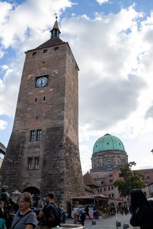 Nuremberg's Weißen Turm and St. Elisabeth Church captured in Bavaria, Germany, showcasing historic architecture, vibrant city life, and iconic medieval landmarks.