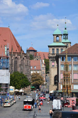 Nuremberg, Germany - May 17, 2016: Square in the old town of Nuremberg. Landmark of the city, cityscape