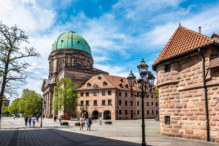 Nuremberg, Germany - May 08, 2022: View of the historical center of Nuremberg. Middle Franconia, Bavaria, Germany in Europe