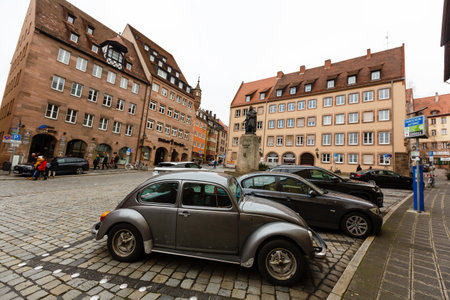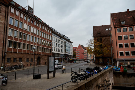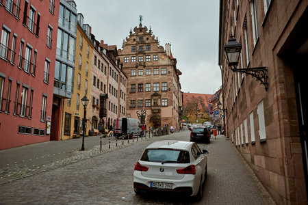 NUREMBERG, GERMANY - NOVEMBER 8, 2017: City life. Bavarian and Franconia town architecture.