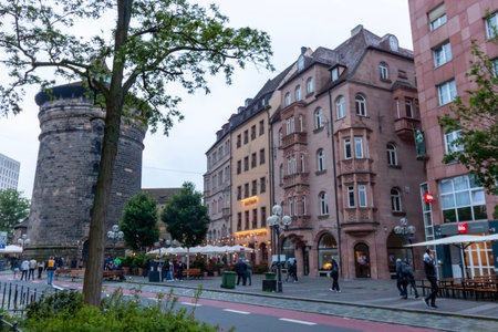 NUREMBERG, GERMANY - MAY 17, 2024: On the streets and square in the inner city of Nuremberg, Bavaria, Germany