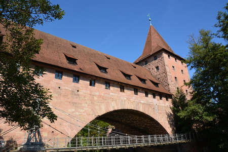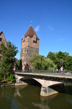 Weinstadel, Henkersteg and Henkerturm in the center of the old town of Nuremberg. Travel in Bavaria