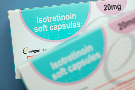 LONDON, UK - August 2022: packs of isotretinoin or roaccutane tablets used to treat severe acne