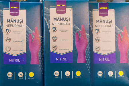 Cleaning gloves. Background with copy space for text. Illustrative editorial. December 18, 2021 Balti Moldova.