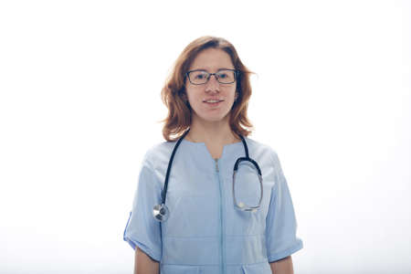 Portrait of a beautiful young woman doctor with a stethoscope.