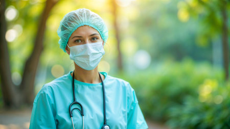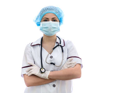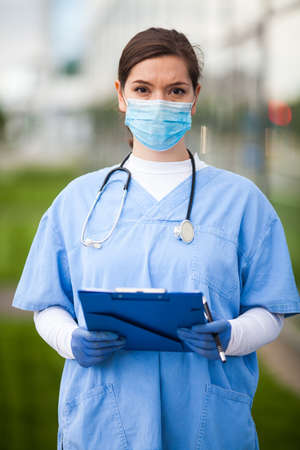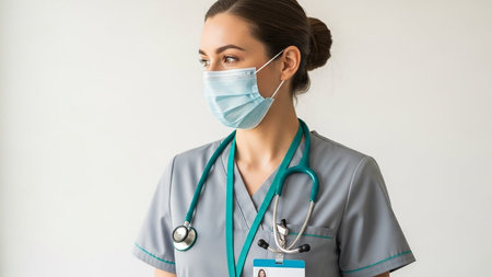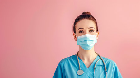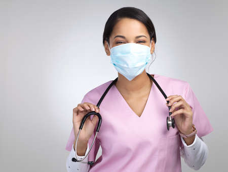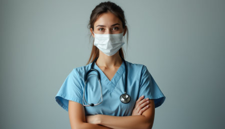 Portrait of a female nurse or doctor wearing a surgical mask and stethoscope