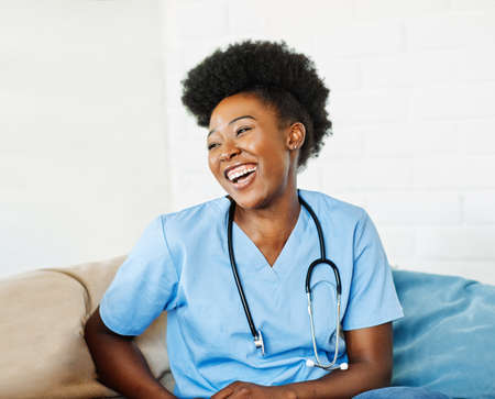 Portrait of a young female nurse caregiver in a nursing home or visit in household