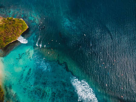 Coast as a background from top view. Turquoise water background from top view. Summer seascape from air. Nusa Penida island, Indonesia. Travel - image