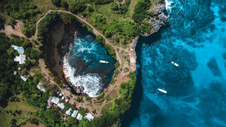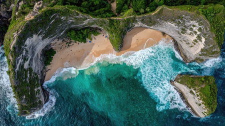 Generative AI : Aerial view of Kelingking Beach Nusa Penida Indonesia