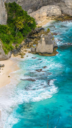 Aerial view of beautiful beach in Nusa Penida, Bali, Indonesia