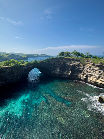 Landscape over Broken Beach in Nusa Penida, Indonesia Angel's BillaBong Beach. Popular tourist destination Bali.