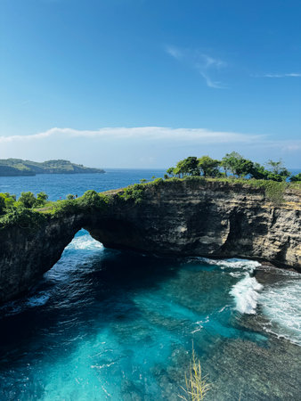 Landmark named Broken beach on the island of Nusa Penida, Bali, Indonesia