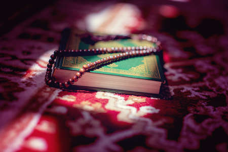 prayer beads on Koran holy book of Muslims