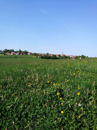 idyllic rural village named Schleierhof located in the Hohenlohe district in Southern Germany at summer time