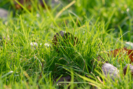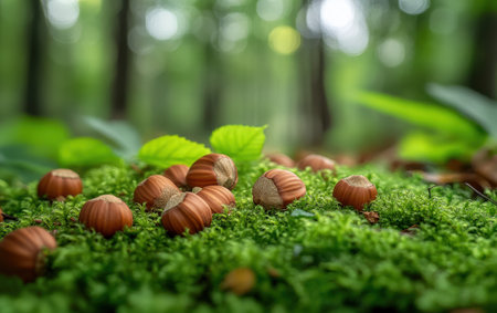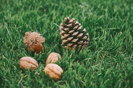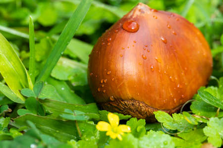 nuts in the grass with dew