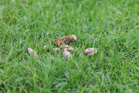 Close up poo poo of the dog drop on the grass