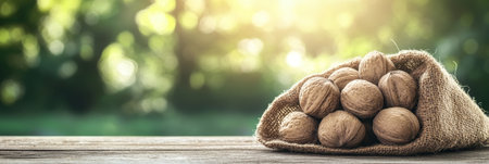 Freshly Harvested Walnuts Spilling From a Rustic Burlap Bag, Healthy Food and Autumn Harvest Concept