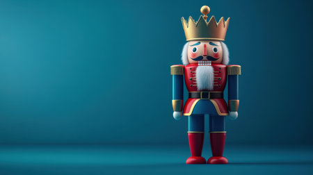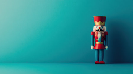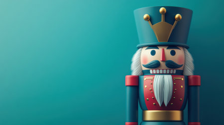 A vibrant nutcracker figure stands against a turquoise background, embodying holiday spirit with its colorful details and traditional design perfect for festive celebrations.