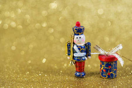 Wooden Nutcracker soldier Christmas decoration with sparkling in background