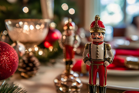 A nutcracker figurine adds joy to festive decorations for holiday gatherings.