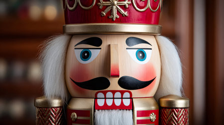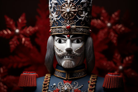 Close up of a Christmas nutcracker. Christmas copyspace background. Generative AI.