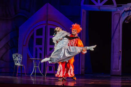 DNIPRO, UKRAINE - DECEMBER 29, 2018: Musical Kitsin House performed by members of the Dnipro Opera and Ballet Theatre.