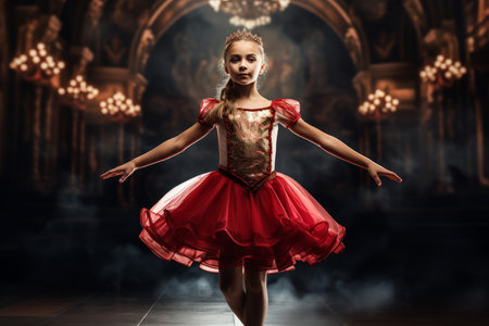 Petite Ballerina small girl theater stage. Girl performance. Generate Ai