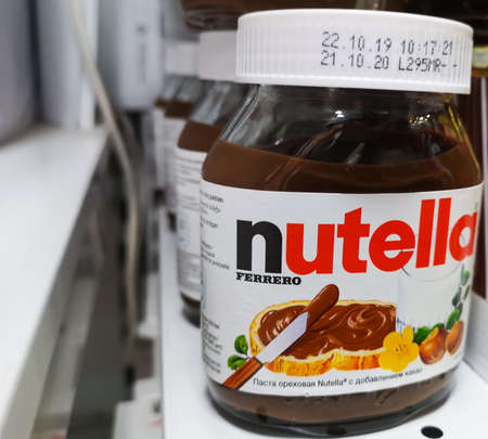Tyumen, Russia-October 15, 2021: Nutella is the brand name of a chocolate hazelnut. Manufactured by the Italian company Ferrero.