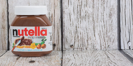 TOKYO, JAPAN - 2ND OCTOBER, 2015. First introduced in 1964 Nutella is the brand name of an Italian sweetened hazelnut chocolate spread and manufactured by the Italian company Ferrero.