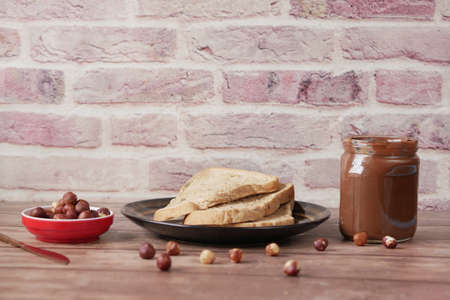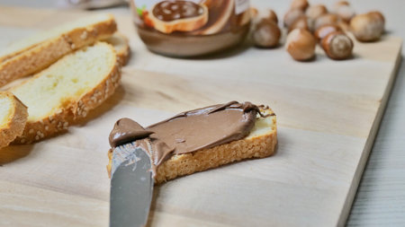 Chocolate nut paste with slices of fresh white bread