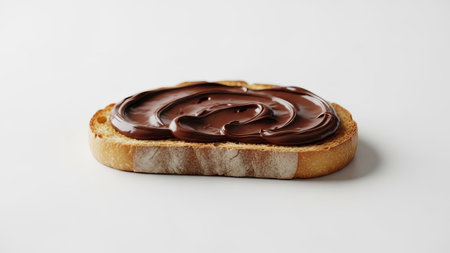 A single slice of toasted bread generously layered with smooth chocolate spread, ideal for showcasing breakfast options, desserts, or creative culinary uses.