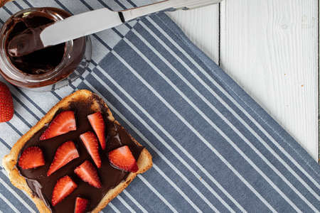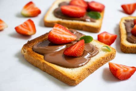 Sandwich toast with chocolate paste and cut strawberry