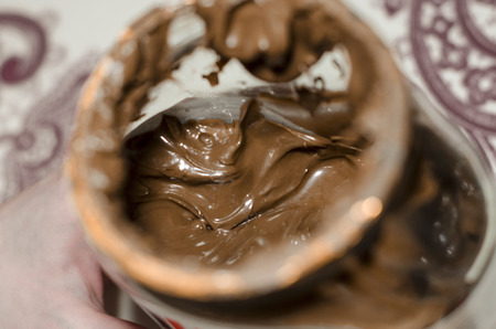 Chocolate Hazelnut cream in a container on table