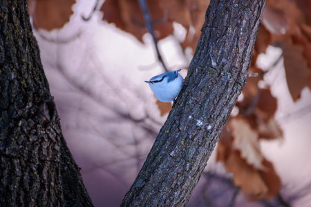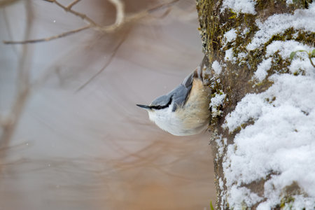 Eurasian nuthatch (sitta europaea) in winter