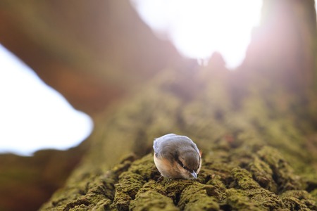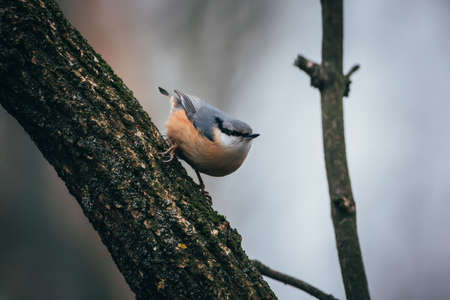 Eurasian nuthatch searching for food in the woods