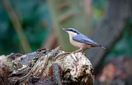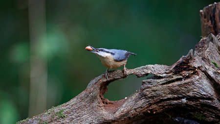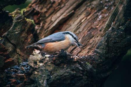 Nuthatch collecting seeds and nuts in the woods
