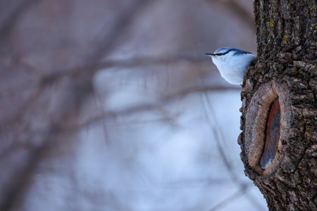 Nuthatch on a tree in the forest in early spring.