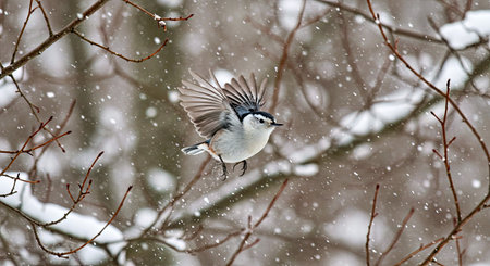 Adorable Small Bird Covered in Snow Flakes Winter Wildlife