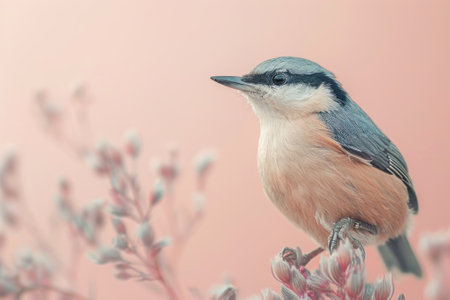 Nuthatch, isolated on pastel background, stock photographic style