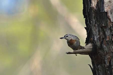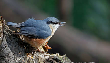 Nuthatch sitting on a stump; Eurasian Nuthatch perched on a trunc