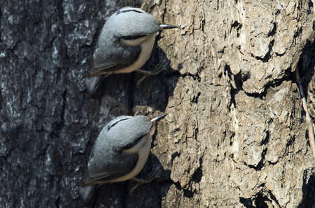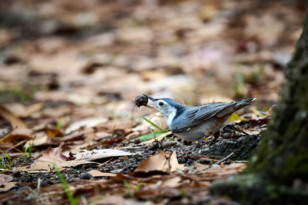 Nuthatch foraging for food in the woods