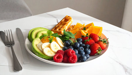 the intricate details of a fitness breakfast on a pristine plate.