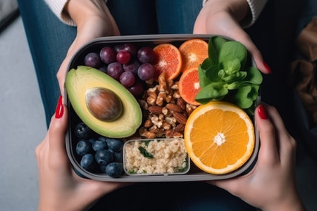From Hand To Hand A Woman Passes A Healthy Lunch Box